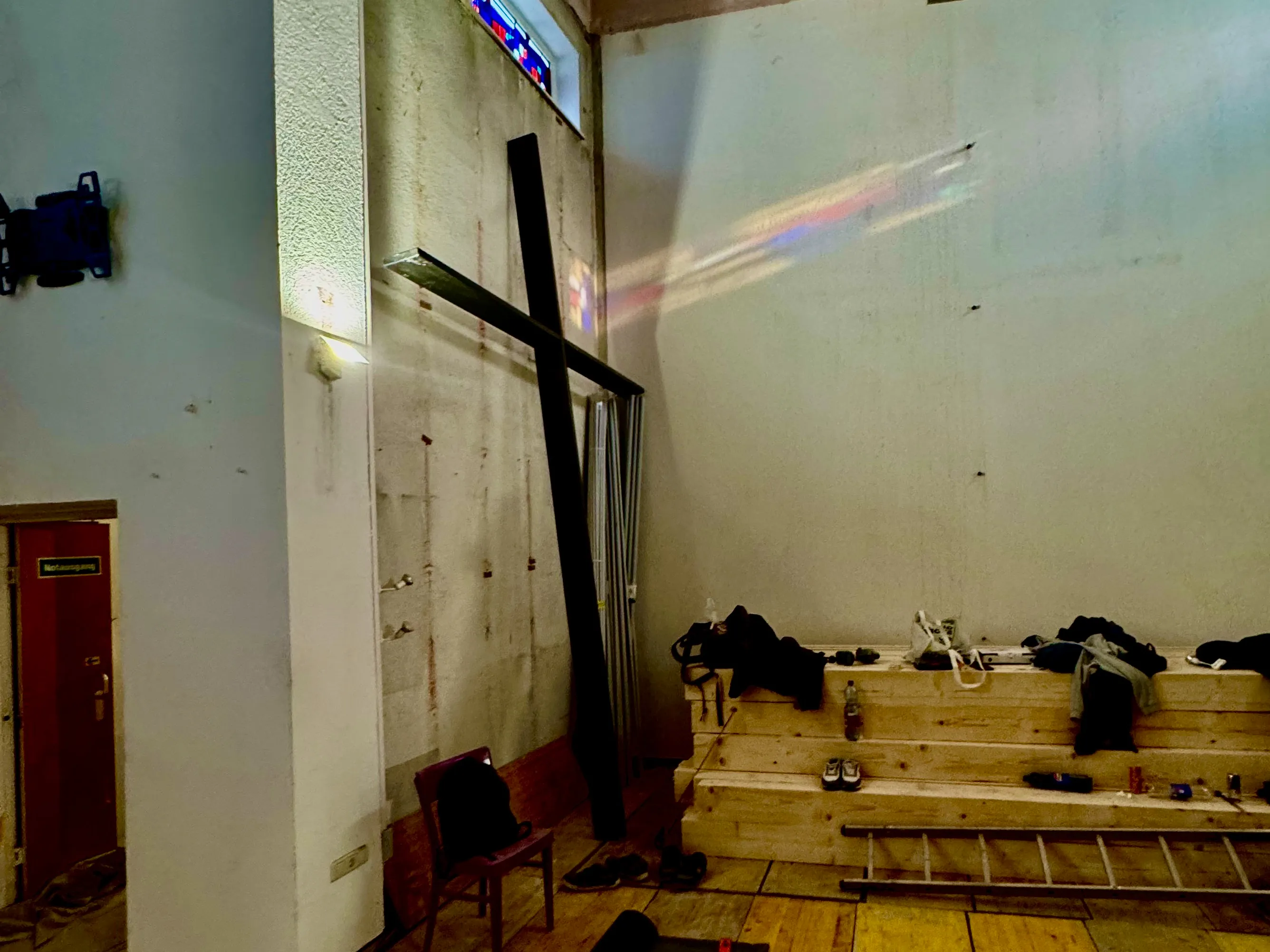 Wer einen Blick in die Baustelle geworfen hat, kann sich vorstellen, dass die Kosten für diese Instandsetzungsarbeiten sehr hoch sind. Wir sind dankbar, dass der Kirchenvorstand beschlossen hat, dass die Kosten für die unvorhergesehen notwendig gewordenen Arbeiten von der Eigentumsverwaltung unserer Kirche zu tragen sind. Es gibt jedoch viele kleinere und größere Dinge, die wir sinnvollerweise im Zuge dieser Arbeiten durchführen müssen: so kann jetzt beispielsweise die Audio-, Video- und Livestreamtechnik und die dafür benötigten Netzwerkverbindungen auf einen zeitgemäßen Stand gebracht und ein angemessener und auch optisch ordentlicher Technikplatz im Kirchenraum geschaffen werden. Auch die defekten Fensteröffner im Saal sollen im Zuge der Instandsetzungsarbeiten getauscht werden. Es war auch nötig, unseren Flügel in den 1. Stock (und bald wieder zurück) zu transportieren. Der Flügel und die Orgel werden nach der Bauphase etwas Pflege benötigen und müssen neu gestimmt werden.