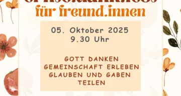 Wir feiern unseren Erntedankgottesdienst am 05. Oktober 2025 um 9.30 Uhr.