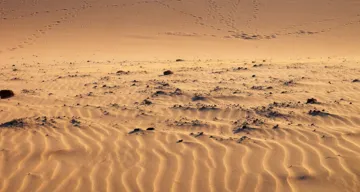 Eine Frau geht durch die Wüste.