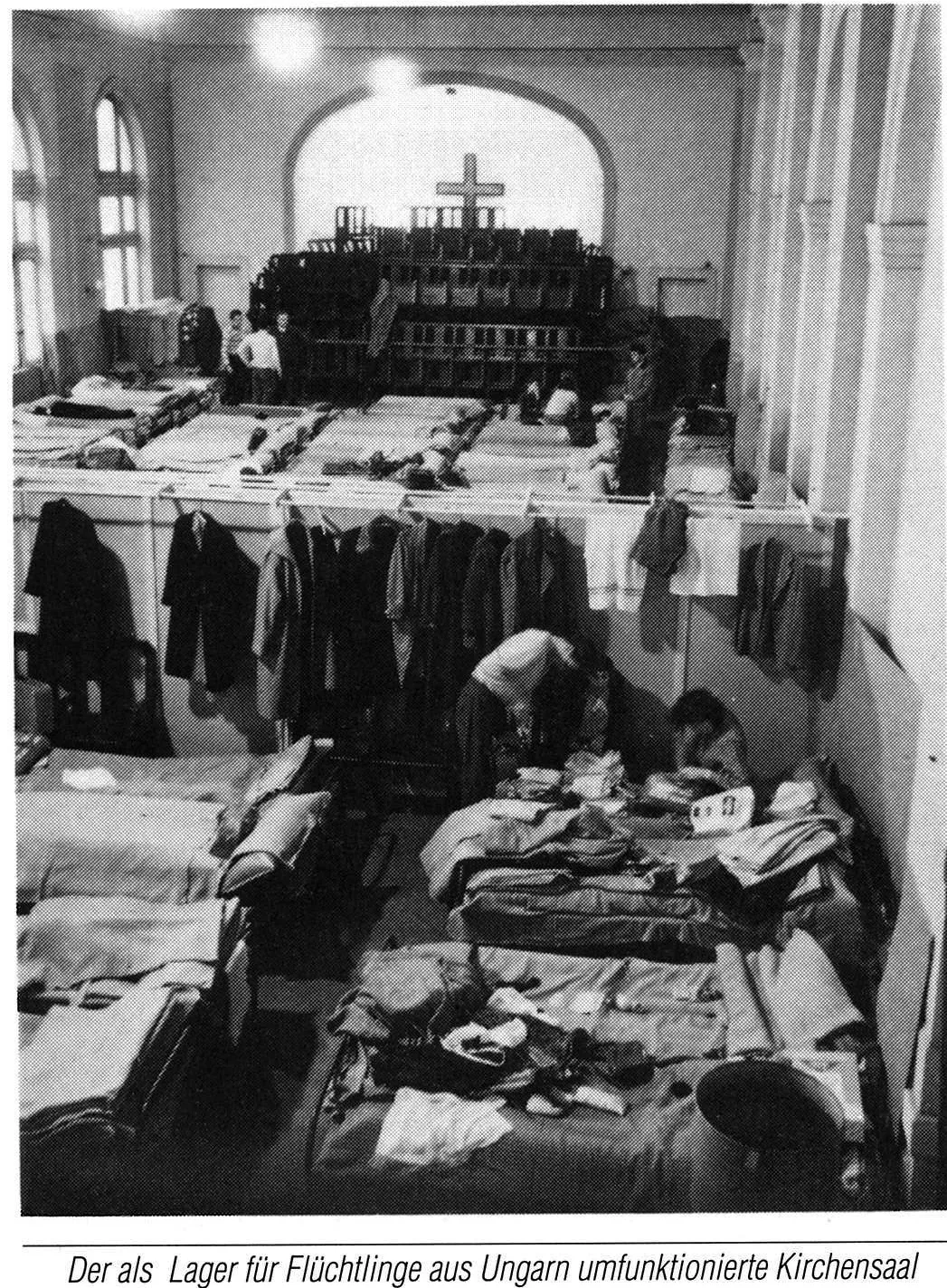 Im Jahr 1956 wurde der Saal während der Oktoberrevolution in Ungarn als Flüchtlingsquartier genutzt und bot für 2 Jahre Raum für bis zu 120 Personen.