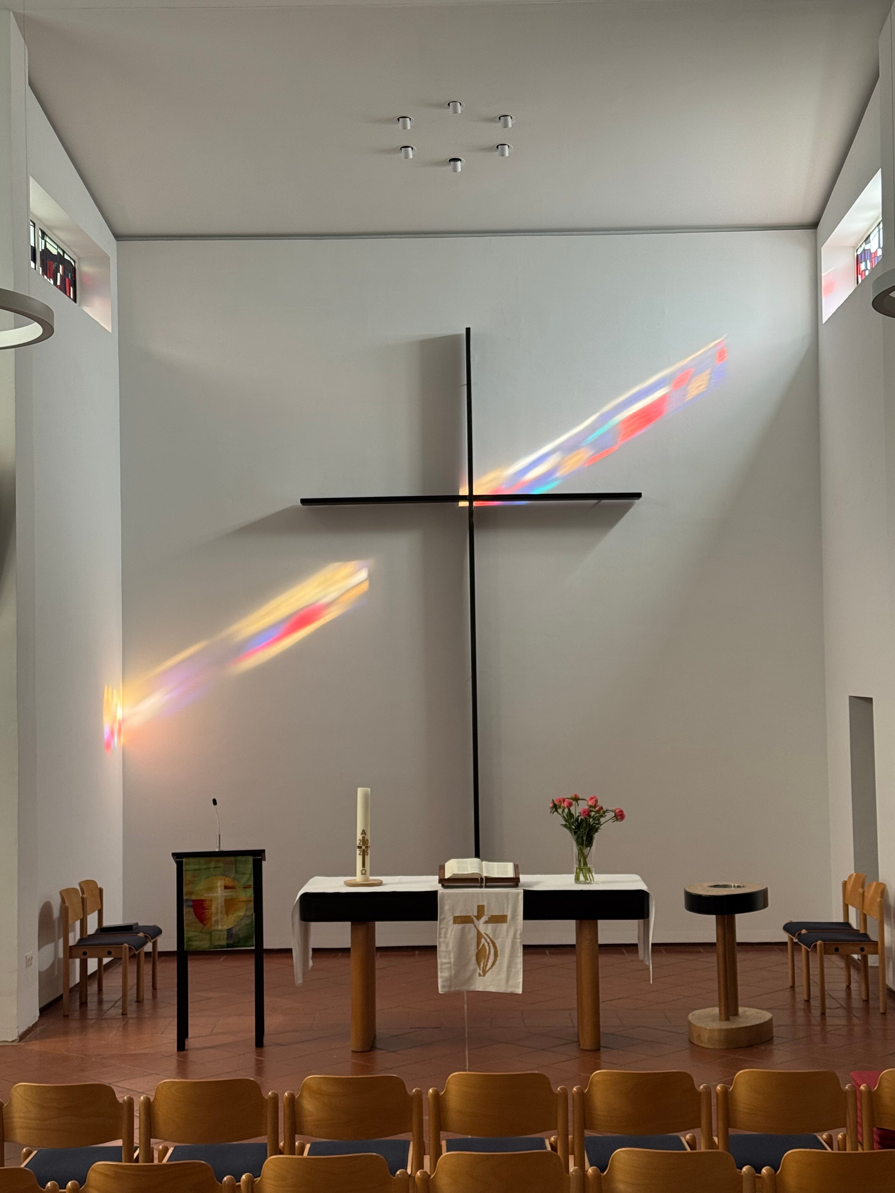 In den Jahren 1988-90 und 1996 erfolgte in mehreren Etappen eine weitere Umgestaltung der Kirchenräume, mit neuer Deckengestaltung und den heute identitätsstiftenden Fenstern der Künstlerin Renate Rosenbauer.