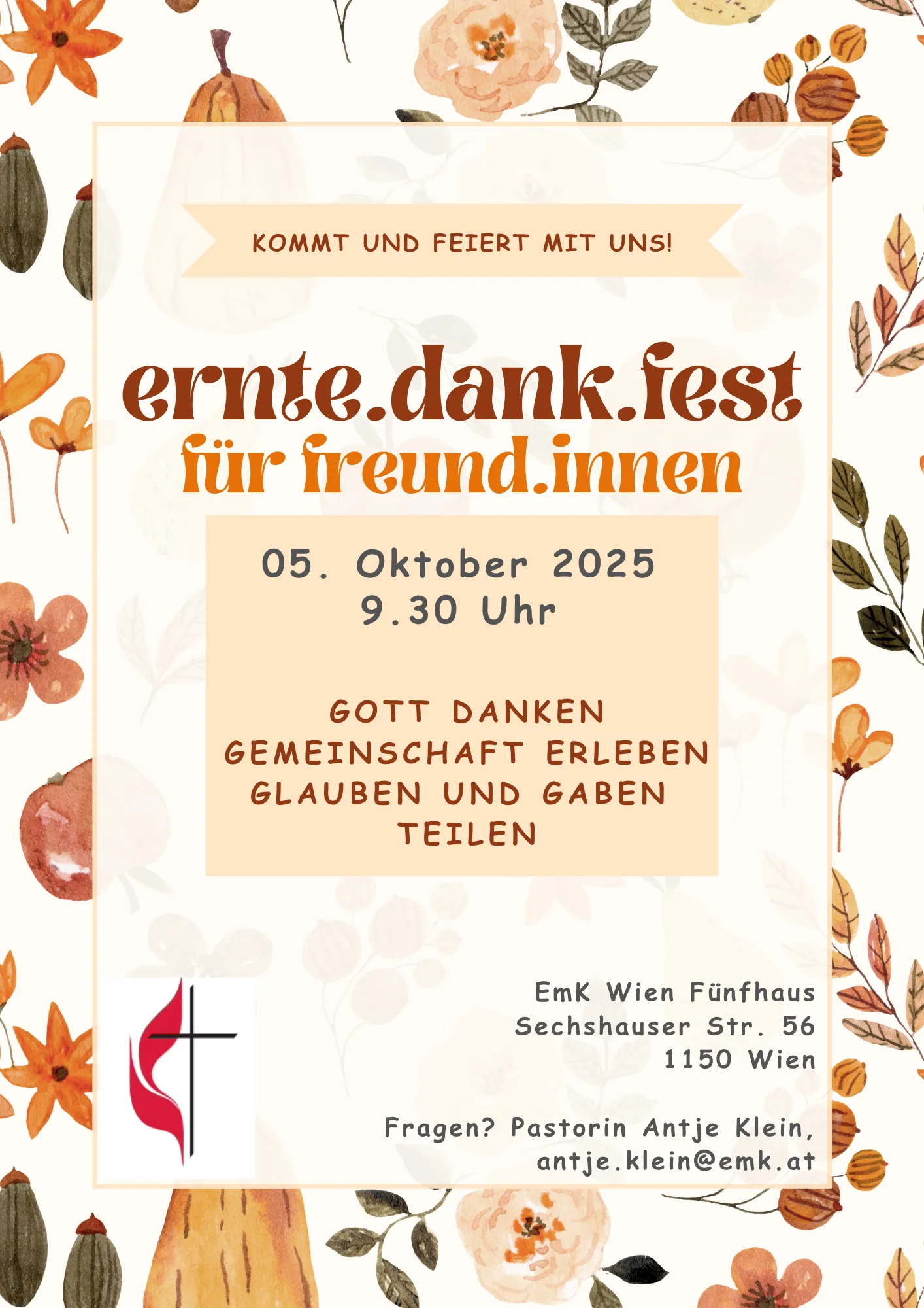Wir feiern unseren Erntedankgottesdienst am 05. Oktober 2025 um 9.30 Uhr.