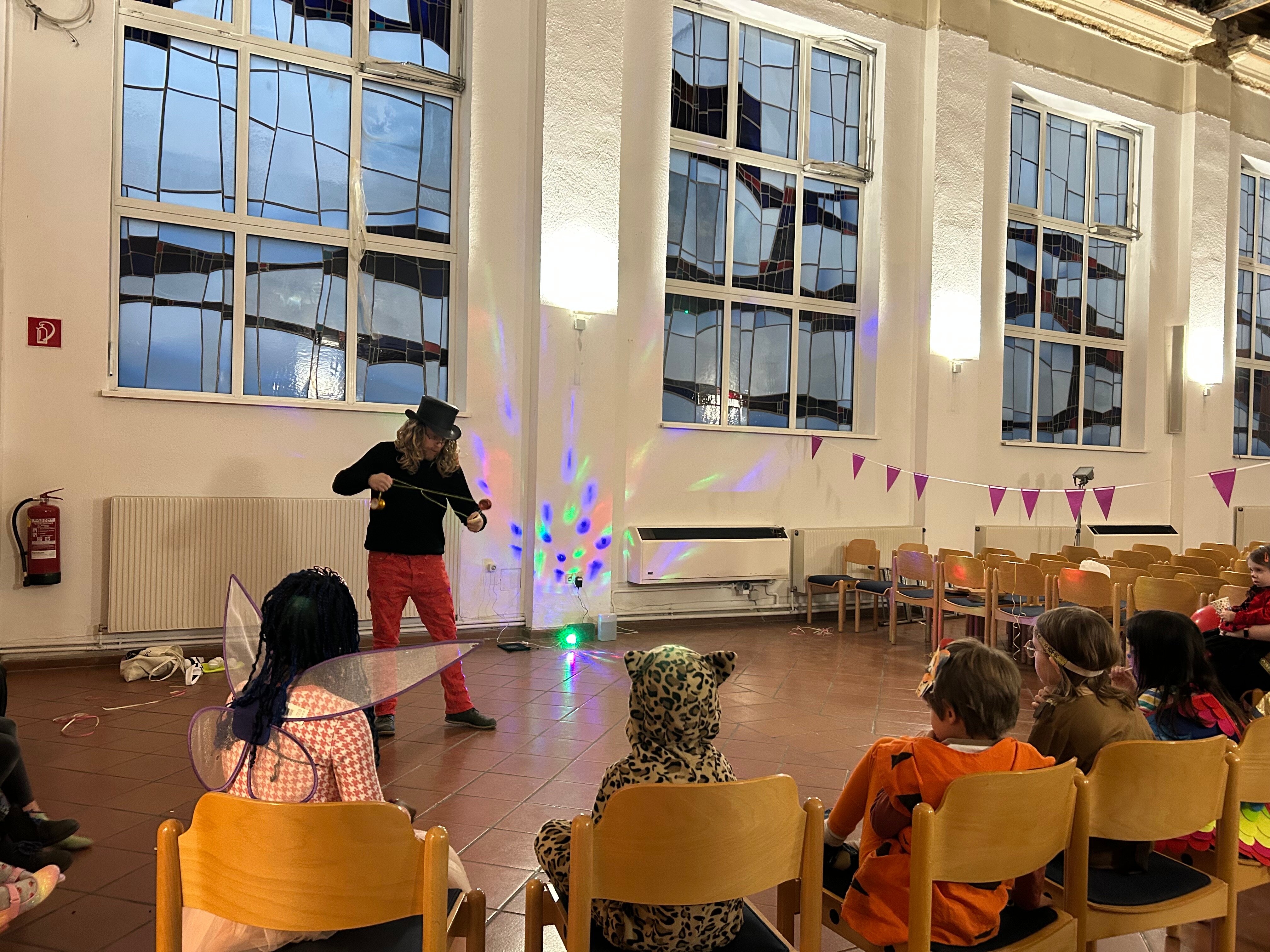 Bunt und lustig war es wieder beim gemeinsamen Faschingsfest der Gemeinden in der Sechshauserstraße. Ob Schmetterling, Paradiesvogel oder Gepard, ob Prinzessin, armes Würstchen oder Punk: Alle waren willkommen zu Spiel und Spaß! Abgerundet wurde das Fest mit einer leuchtenden Show von unserem Poi- und Jonglierkünstler Börnzen!