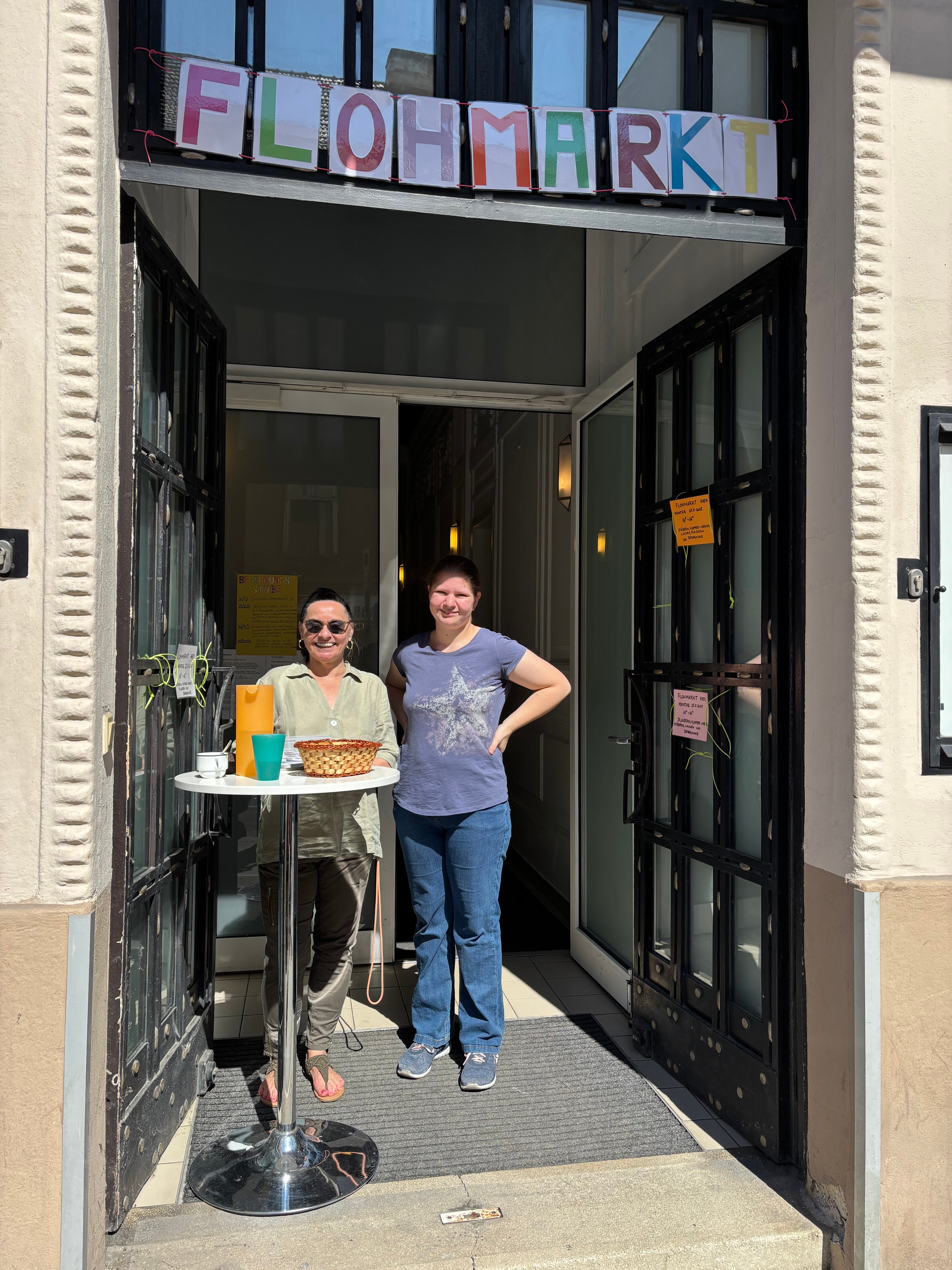 Die Begegnungstube in unserer Nachbarschaft bekannter machen – das war ein Ziel des Flohmarkts, der am 25.08.2025 in unseren Räumen in der Sechshauser Straße 56 stattfand. Viele Menschen nicht nur aus den Gemeinden der EmK und der ESUMC, sondern auch aus der Umgebung, die über die Bezirkszeitung oder über Social Media informiert worden waren, hatten in den Wochen zuvor tolle Spenden bei uns abgegeben. So konnten wir den Besucher*innen beim Flohmarkt ein großes Angebot von Kleidung über Kinderspielzeug, von Büchern über Nützliches und Schönes für den Haushalt bis zu einer Tasse Kaffee und einem netten Gespräch machen. Viele ließen sich einladen, einmal durch unsere Tür und über die Schwelle zu gehen, zu stöbern, sich etwas auszusuchen und das ein oder andere mit nach Hause zu nehmen.