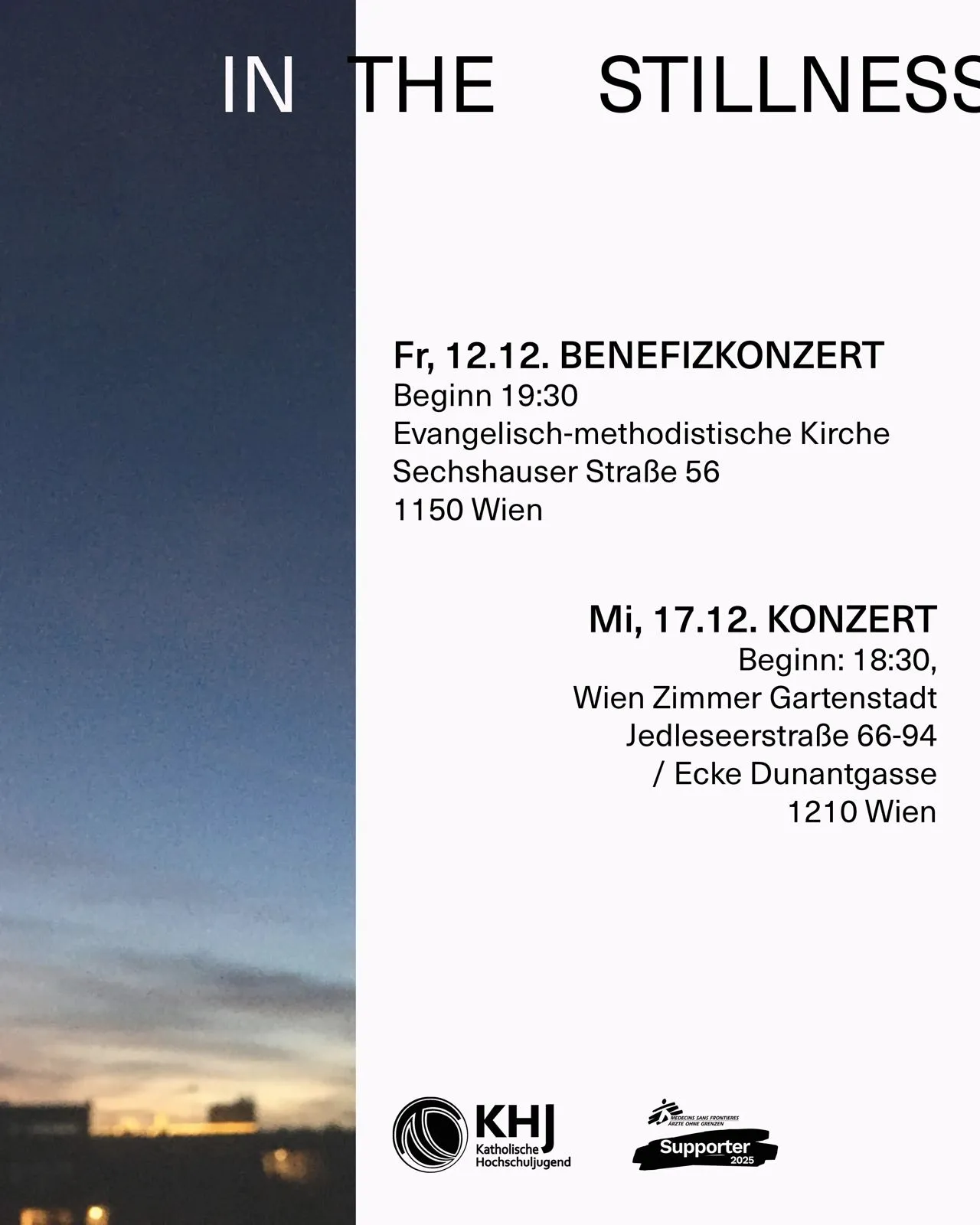 Klänge in der Stille - Stille in den Klängen: Herzliche Einladung, sich am 12.12.2025 um 19:30 Uhr mit dem KHJ-Chor in unserem Kirchensaal in dieses vorweihnachtliche Spannungsfeld entführen zu lassen.