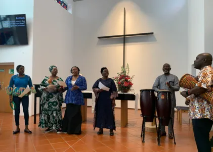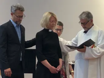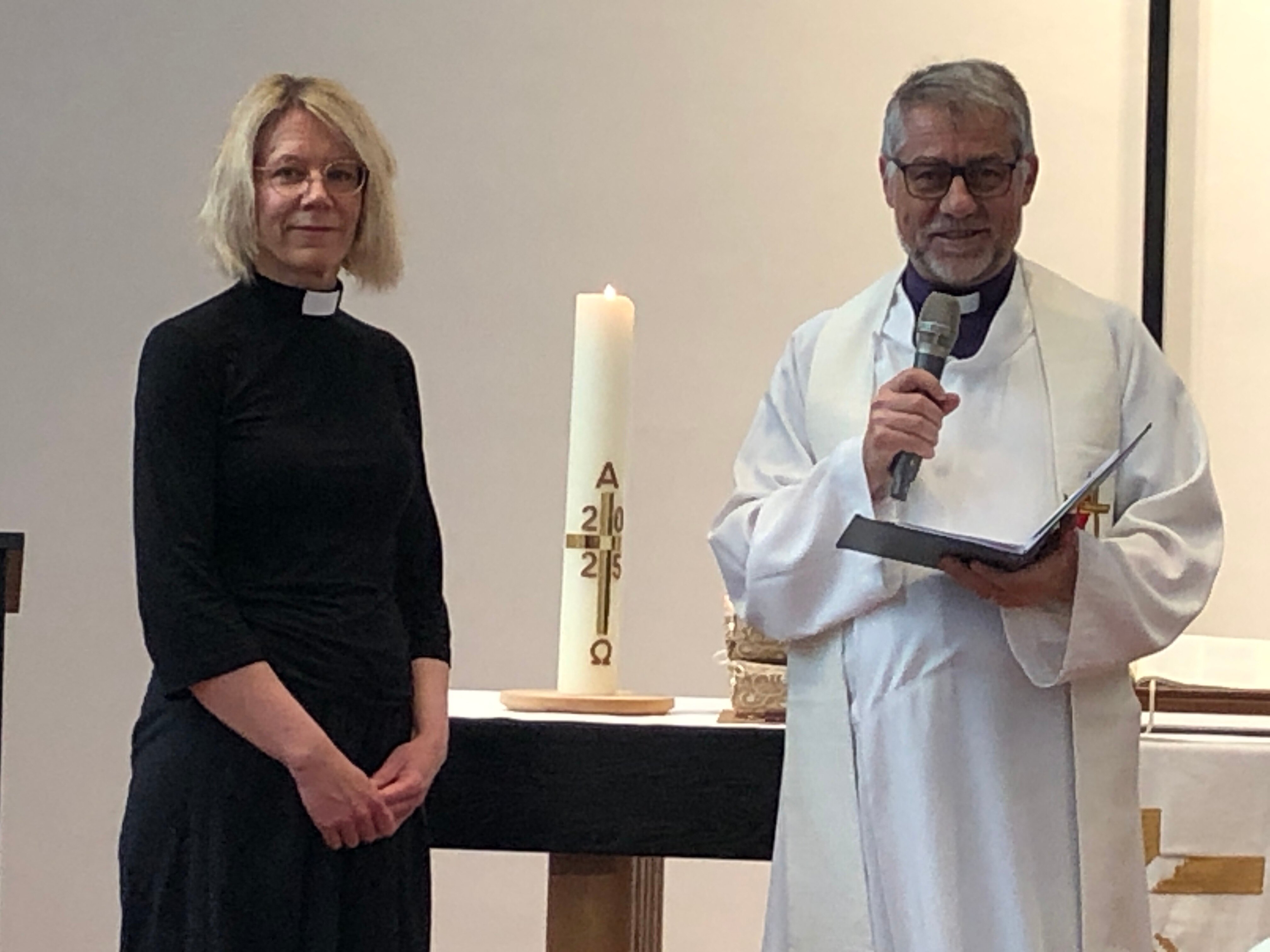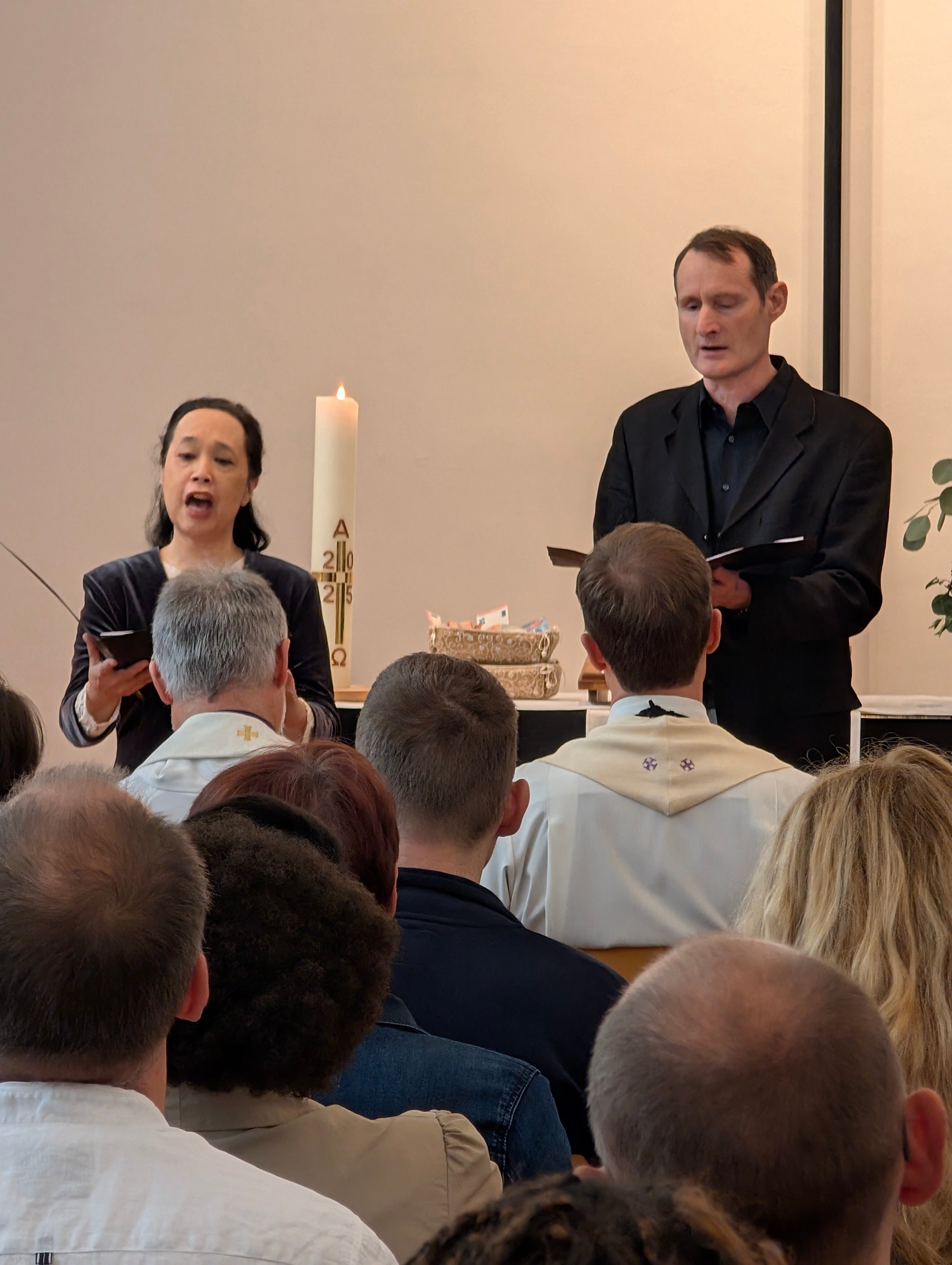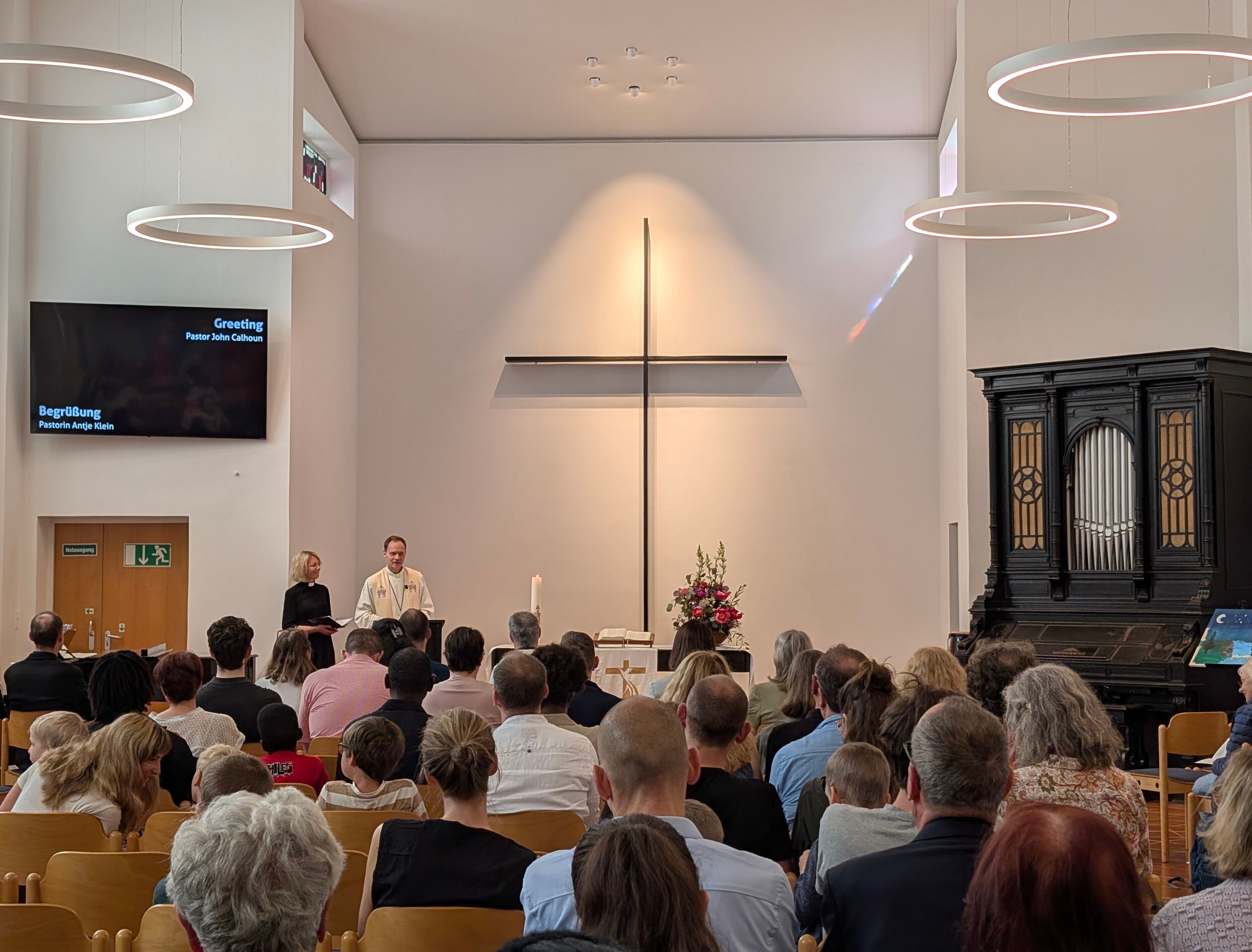 Den Gottesdienst leiteten Pastor John Calhoun (ESUMC) und die neue Pastorin der EmK Wien-Fünfhaus, Antje Klein. Sie wurde für ihren Dienst in der EmK Österreich gesegnet.