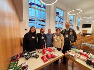 149 Gäste haben wir an diesem Tag begrüßen dürfen. Wie gut, dass gleichzeitig eine große Gruppe an Mitarbeiter*innen bereitstand (danke an alle, die dabei waren und diesen Tag so möglich gemacht haben!). Als Weihnachtsfestessen gab es in diesem Jahr Tafelspitz, großzügig gespendet vom dm-Drogeriemarkt. Die Geschenke, die die Schülerinnen und Schüler vom Diefenbachgymnasium und vom Himmelhof mitgebracht hatten, wurden ebenso überreicht wie etliche Sackerln mit Weihnachtskeksen, die von der ESUMC liebevoll verpackt worden waren.