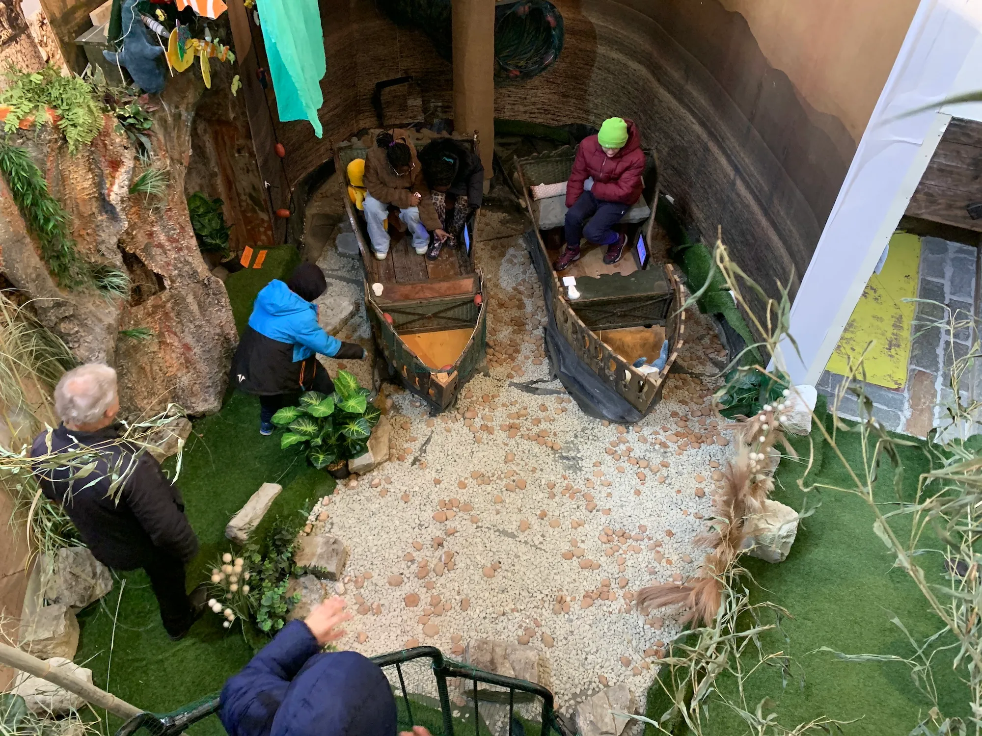 Für die Kinder steht schon der nächste Punkt auf dem Programm: in die geheimen Tunnel der Bibelwelt kriechen und sich dort verstecken, damit bloß noch niemand nach Hause gehen muss...