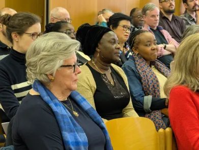 On Saturday 8 March, members of ESUMC welcomed friends from other English-speaking churches in Vienna for a study day on the theme "Wrestling with the Angel," based on the account of Jacob's encounter with the angel in Genesis chapter 32. This spiritual retreat was led by Father Ed Hone, a Redemptorist priest who serves as the Dean of St. Edmund's College, Cambridge, UK. We give thanks to Father Ed for leading our study day, and to the members of other faith communities who blessed us with their presence and participation. And we offer a special word of appreciation to Farzad and Sadaf for providing a tasty and satisfying lunch, and to David and Connie for offering blessed hospitality throughout the day.