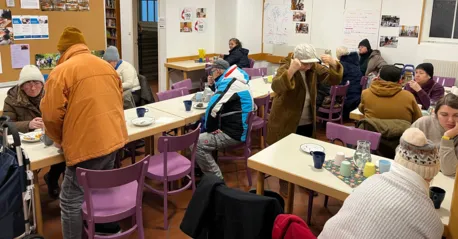 And we invite you to support our new year-round Begegnungsstube (“A Meeting Place”). Every last Tuesday of the month, visitors will be welcomed with refreshments, and will have the opportunity to play board games, engage in community activities, participate in language learning, and enjoy extended conversation and fellowship. Volunteers from ESUMC and the Fünfhaus Gemeinde will staff the Begegnungsstube, and all are welcome to serve. The first Begegnungsstube was held on Tuesday 25 March, and about 10 neighbors and volunteers enjoyed a time of conversation, refreshments, and games. We are grateful to be able to open the doors of our church to meet the needs of our community not only in the winter, but around the year.