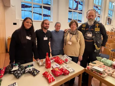 Our Christmas celebration on 23 December was a blessed event for our 150 visitors: we celebrated with a special worship service, which included music by our volunteers and a reading of the nativity gospel in two languages. We offered a traditional Austrian meal of Tafelspitz (boiled beef in broth) with all the trimmings, hot apple cider, and lots of desserts. Our Christmas cookie project, to which our members have so generously donated, ensured all guests went home with a package of delicious homemade cookies, which was very popular with all!
