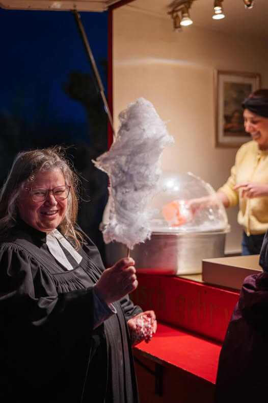 Zum Ausklang war eine Agape mit Getränken, Eiern, Osterbrot, sowie gebrannten Mandeln und Zuckerwatte vorbereitet. Ein Fest der Genüsse!